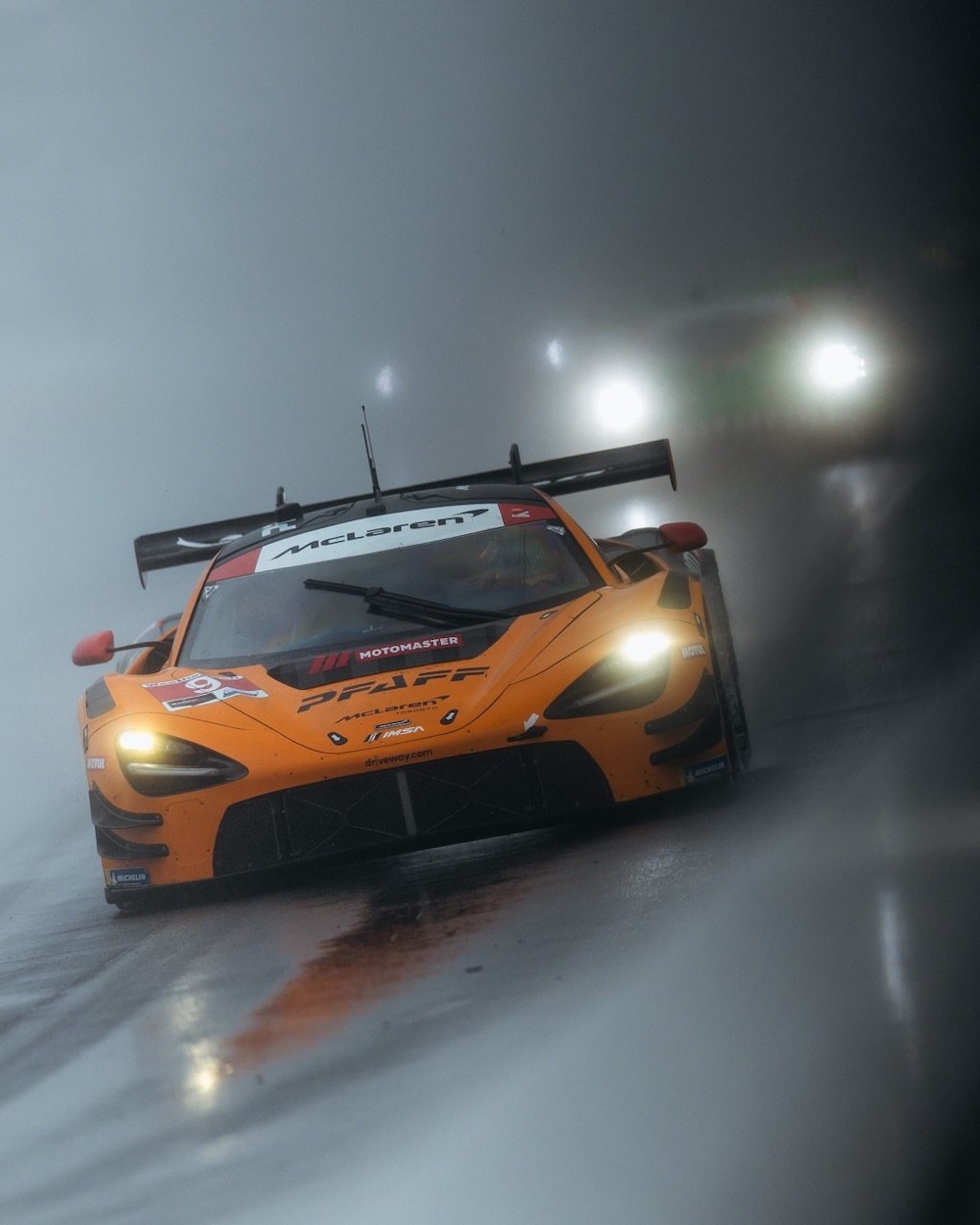 Von Platz 11 aus startet Marvin Kirchhöfer in das vorletzte Rennen der Saison. Der 30-Jährige kämpfte sich in einem mehr als dreistündigen Stint unter widrigen Wetterbedingungen bis an die Spitze und führte sogar zwischenzeitlich das GTD-Pro Fahrerfeld an. Starker Regen sorgte früh für zahlreiche Full-Course-Yellow- Phasen, die Pfaff Motorsports für strategische Entscheidungen clever ausnutzte und so den orangefarbenen McLaren mit der Startnummer #9 in die Spitzengruppe spülte.